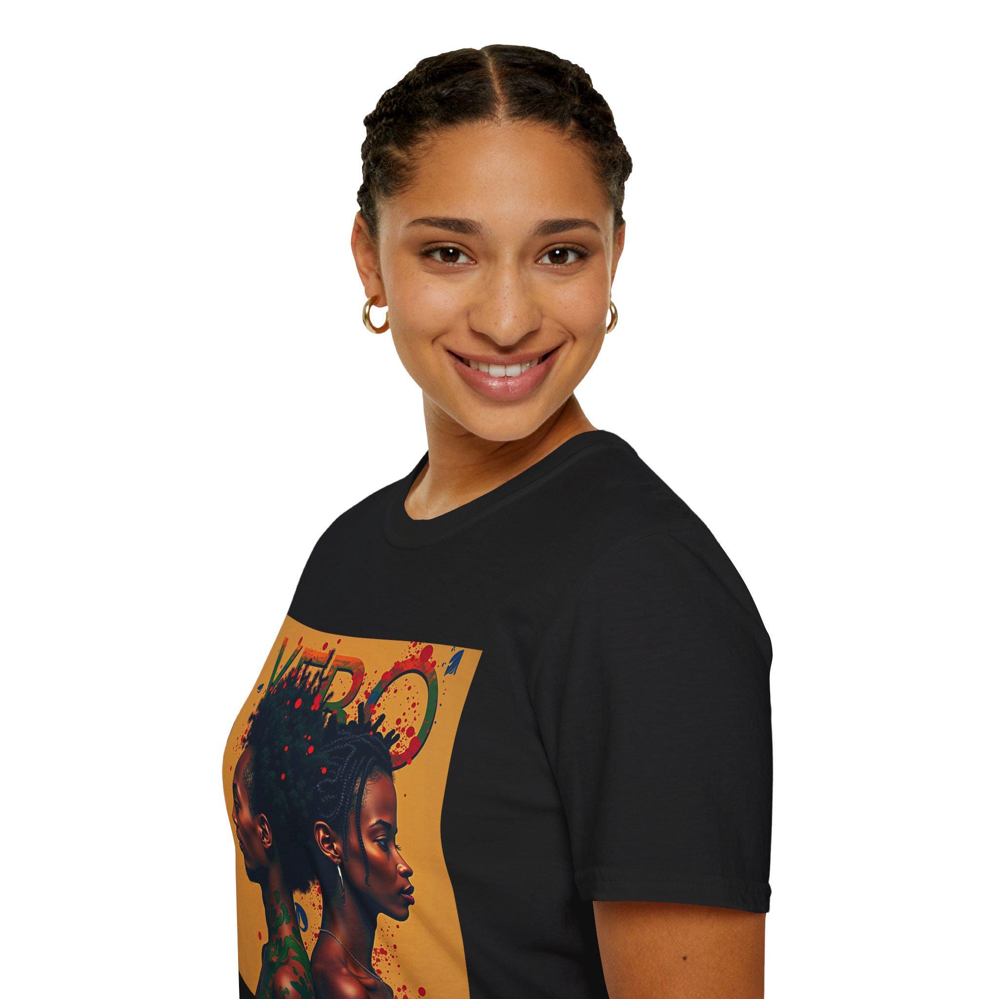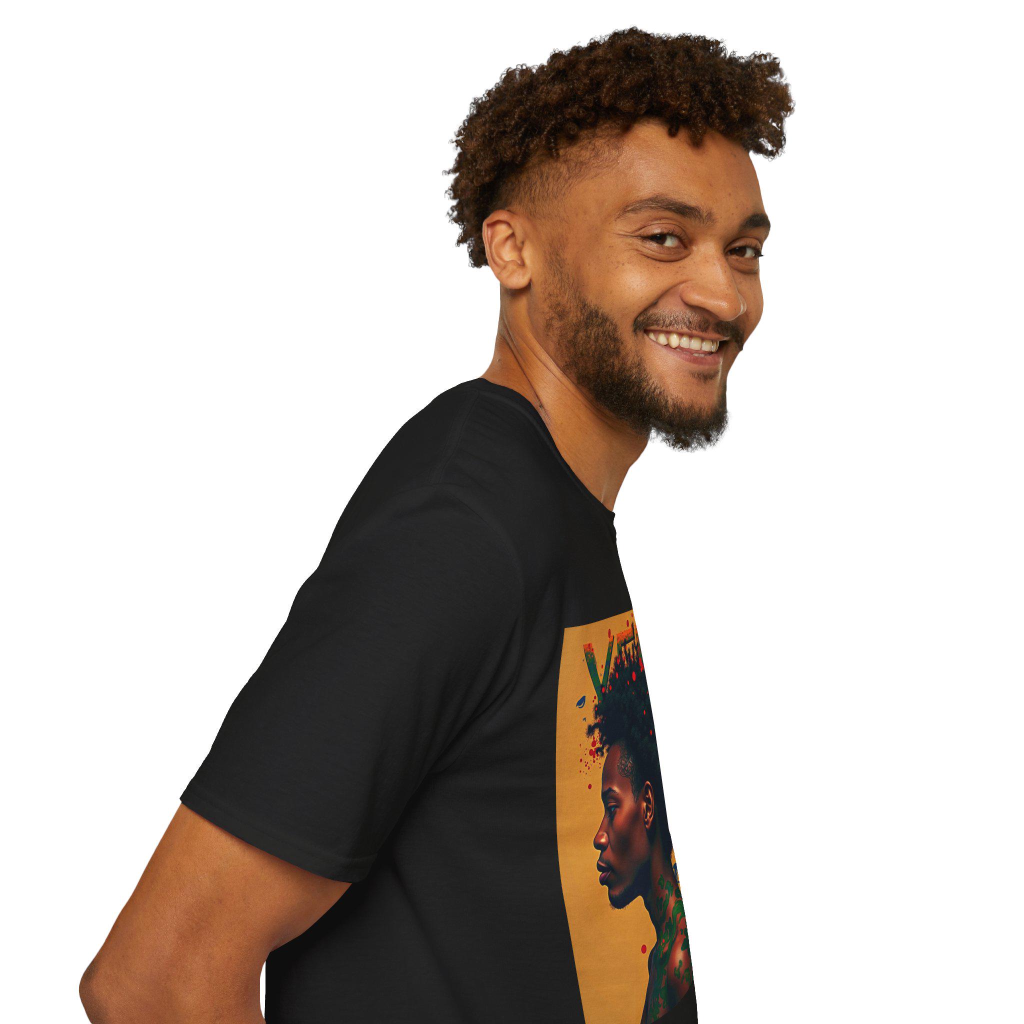 This graphic tee carries bold Afrocentric artwork that reads like a statement and a conversation starter. Soft, smooth cotton sits close to the skin while the striking black-culture motifs bring streetwise energy — it’s what you reach for when you want an outfit that speaks confidently without shouting. Wear it layered under a denim jacket on late-night city walks, or alone at gallery shows and pop-up markets; the design anchors your look and signals pride in Black art and heritage. Thoughtful construction—durable ring-spun cotton, taped shoulders, and a resilient ribbed collar—keeps the shirt feeling lived-in and reliable. The sleeve and neck prints use modern DTF and DTG methods for crisp, lasting color that won’t fade after a few washes. For adults who collect statement pieces and support ethically sourced basics, this tee blends craft, culture, and everyday comfort.